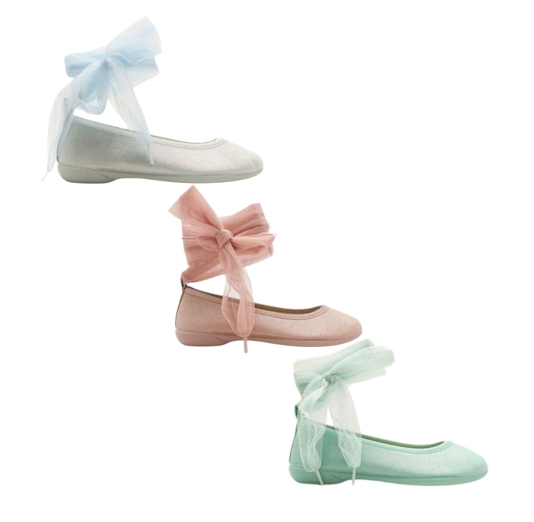 “Deslumbra con nuestras exclusivas bailarinas hechas de suave tejido y decoradas con un delicado lazo de tul en el tobillo. Estas bailarinas están disponibles en colores como rosa pastel, verde menta y celeste perla, ideales para realzar cualquier atuendo con un toque elegante y romántico. Perfectas para eventos especiales o para añadir un detalle chic a tu día a día, combinan comodidad y estilo en cada paso. ¡Hazlas tuyas y brilla como nunca!”