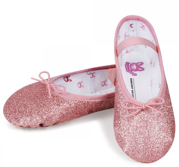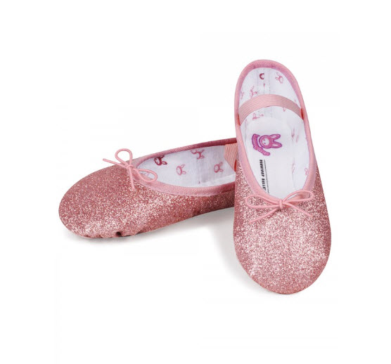 Zapatilla de media punta para niña que se caracteriza por ser de satén suave con purpurina y suela entera