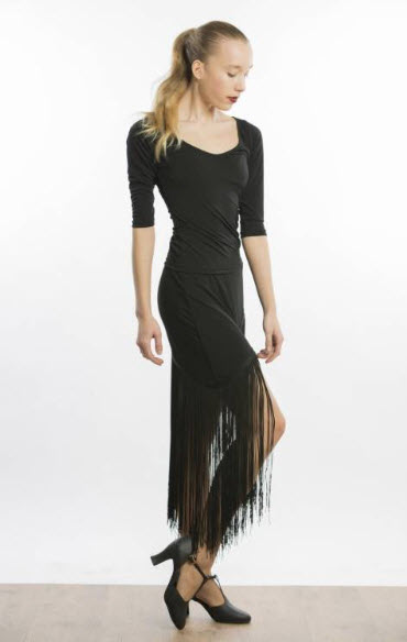 Confeccionada en punto elástico para una total movilidad y confort en tus pasos de baile latino, salón, salsa, tango, rumba, cha-cha-cha, mambo, bachata…