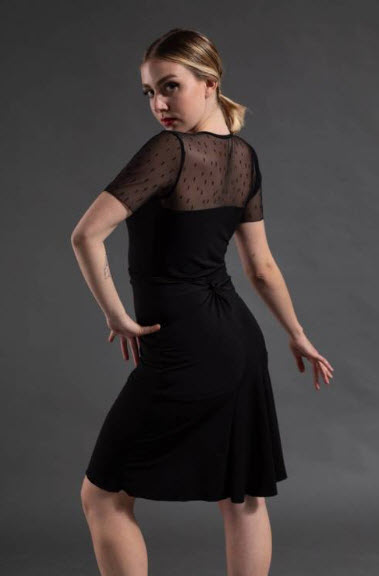 Confeccionada en punto elástico para una total movilidad y confort en tus pasos de baile latino, salón, salsa, tango, rumba, cha-cha-cha, mambo, bachata…