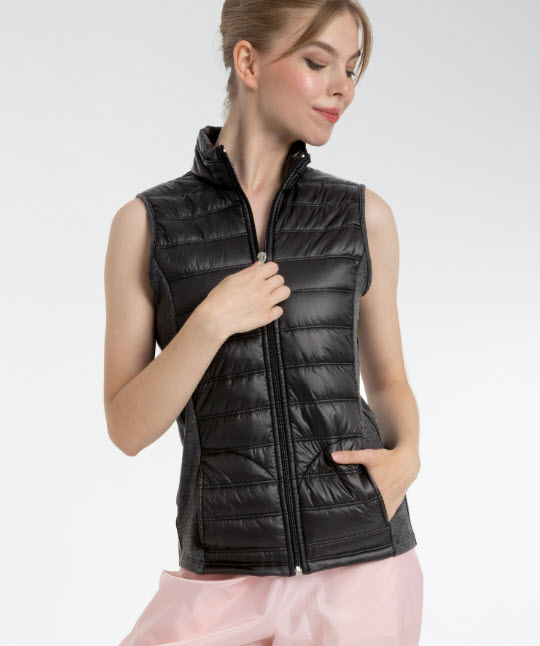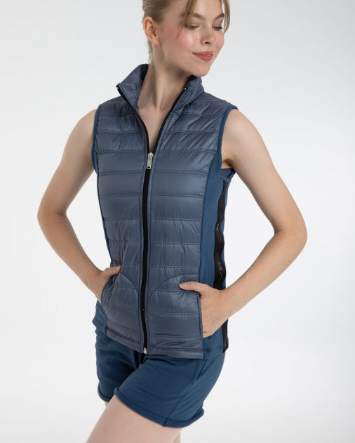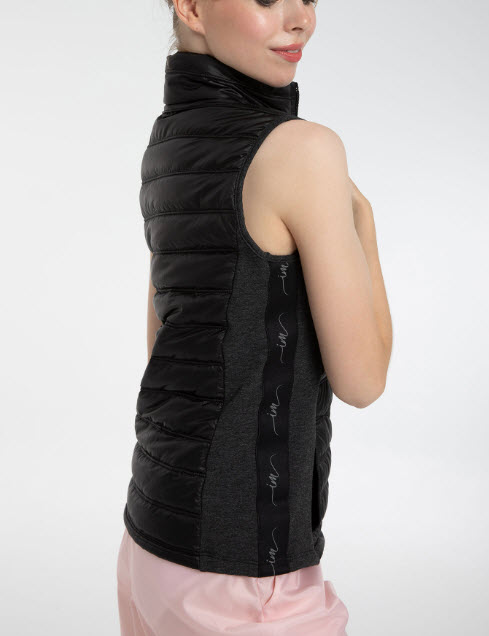 Chaleco acolchado combinado con tejido de felpa en los laterales y goma con logo de Intermezzo, cremallera delantera, cuello alto y bolsillos