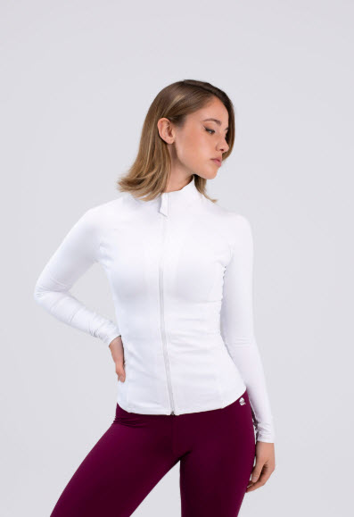 Chaqueta ajustada que termina justo a la altura de la cintura, mangas de ajuste cómodo para mayor confort y libertad de movimiento, logo en blanco en espalda