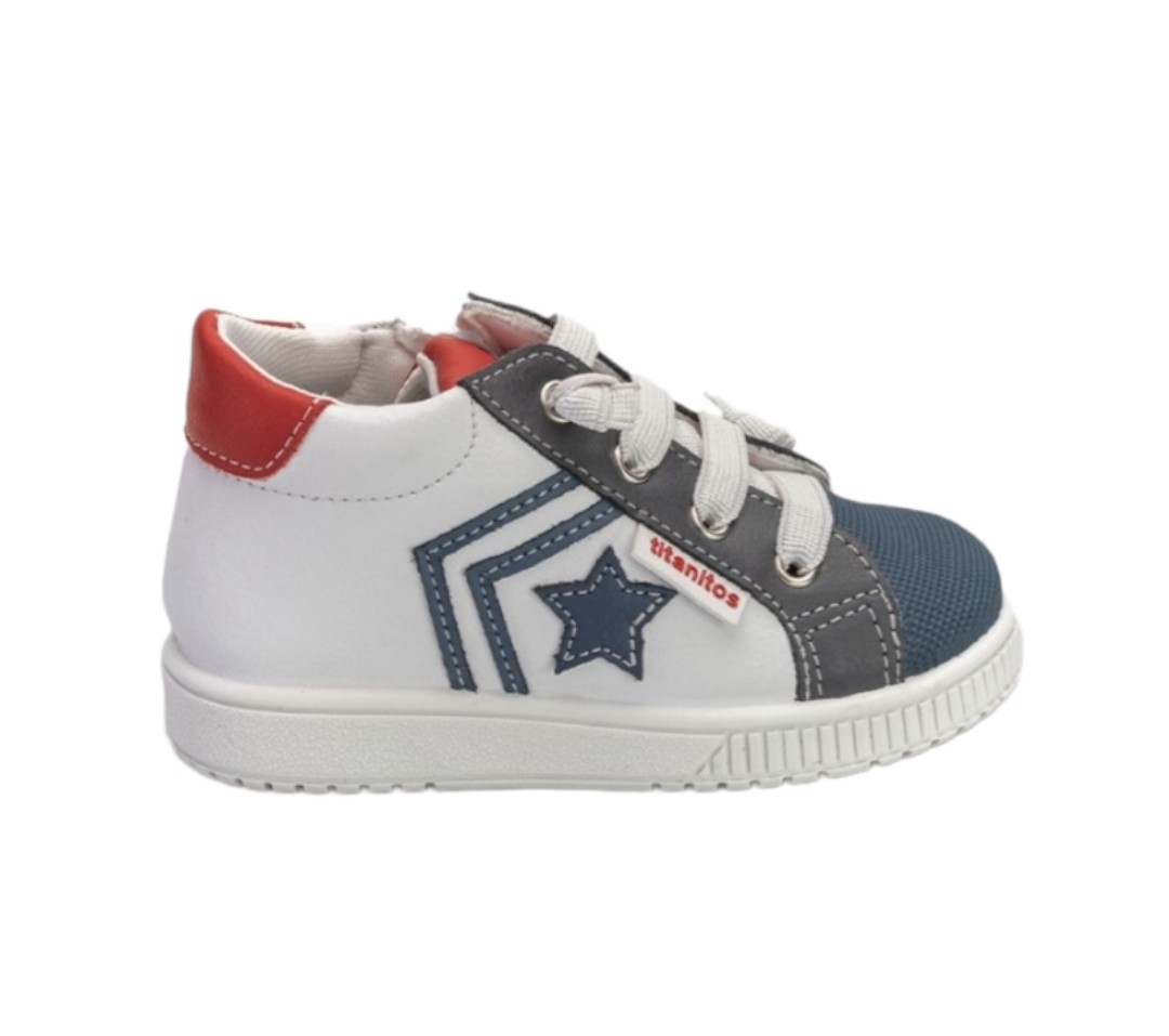 Bota deportiva unisex. Nuestro modelo commander es un botín sport, clásico y muy práctico. Gracias a sus cordones elásticos y a su cremalleras los niños podrán ponerse el zapato fácilmente sin necesidad de desabrocharlo, aportando así mayor independencia y autonomía. Su plantilla ergonómica, antibacteriana y lavable que combinada con la tecnología Bubble Absorber y Movelastic, amortiza el impacto y facilita el ángulo de flexión del pie para que puedan explorar y desarrollar su espíritu aventurero. Realizados en 100% piel lavable sin tóxicos y con refuerzos en talón y puntera para evitar lesiones en sus pies. El interior está formado por forro textil para una fácil transpiración y su suela de goma es perfecta para un extra de confort gracias a su amortiguamiento. 100% fabricado en España. Los zapatos colegiales lavables y los zapatos deportivos colegiales lavables de Titanitos están fabricados íntegramente en España, siguiendo los controles de calidad y seguridad europeos que garantizan un calzado único, duradero y adaptado a todos los niños. Modelo unisex disponible en 3 colores.