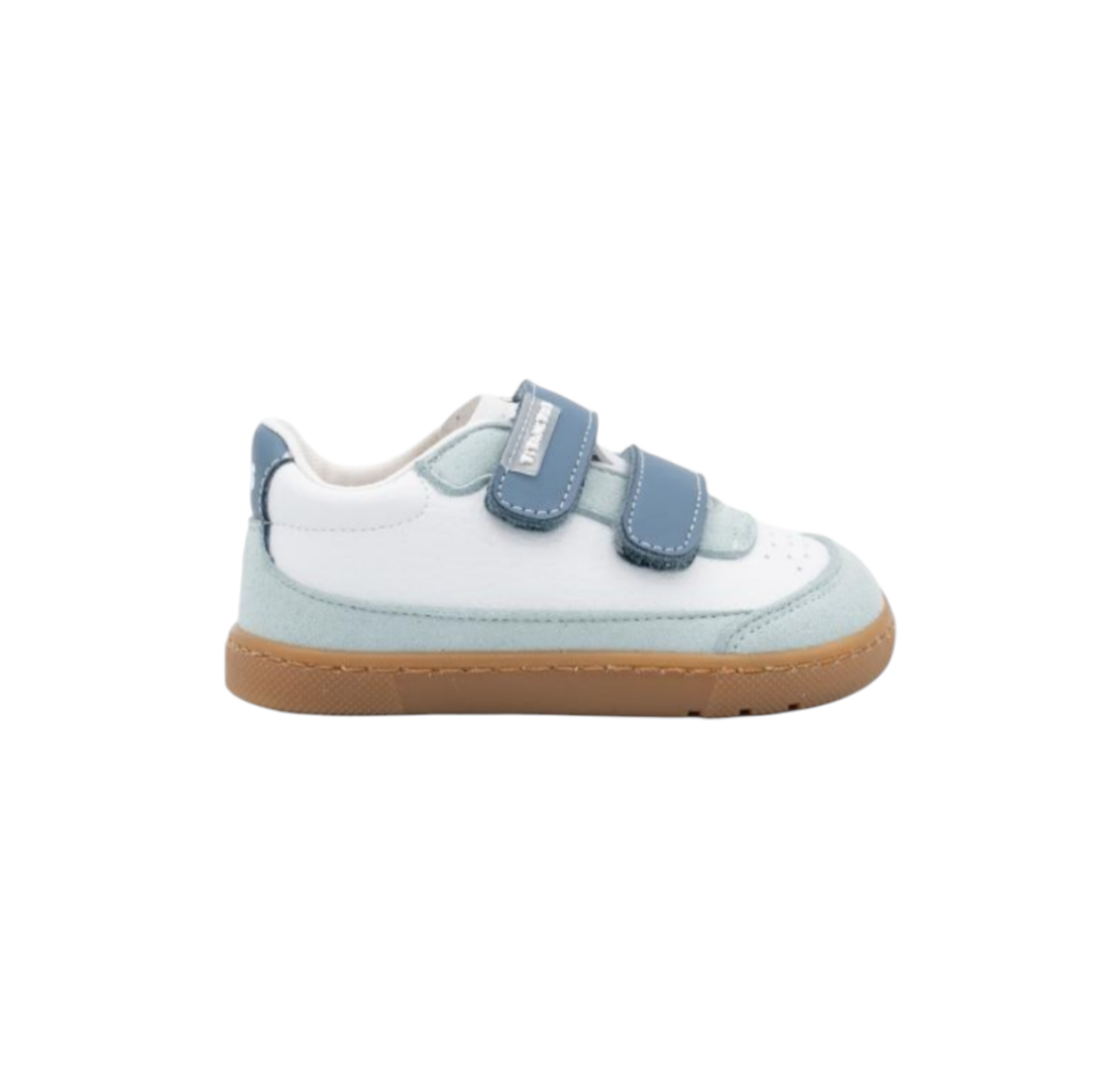 Su diseño en blanco con detalles en azul suave y suela color caramelo lo convierte en un básico versátil que combina con cualquier outfit, desde el uniforme del colegio hasta un look de fin de semana. Además, al ser fabricado en España, garantiza los más altos estándares de calidad y sostenibilidad.