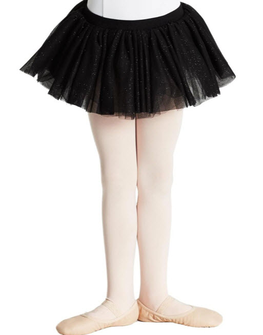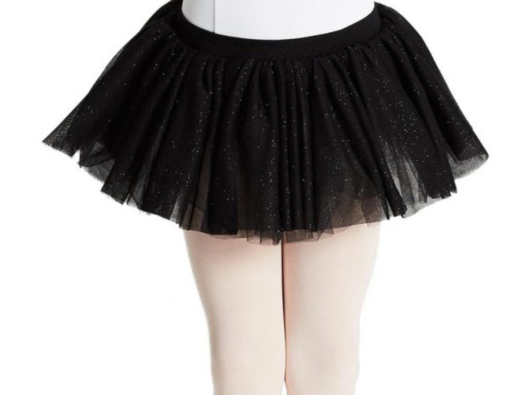 Esta falda tutú de tres capas de tul cuenta con una capa superior hecha de malla brillante (simulando purpurina)