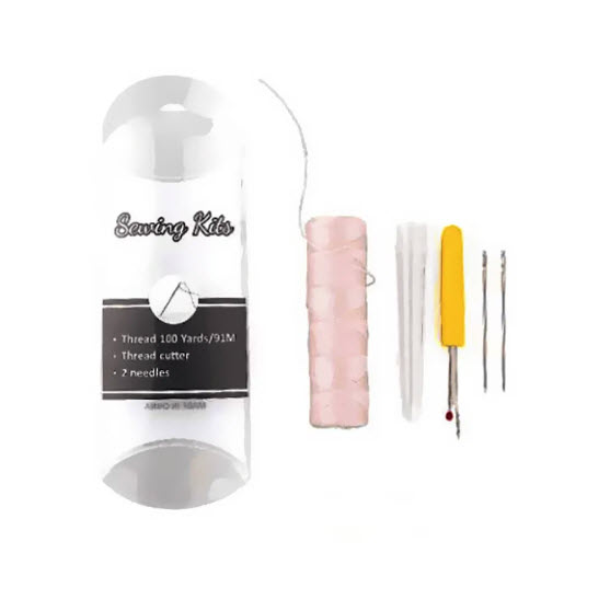 Empaquetado en un pequeño costurero, contiene 91 m de hilo súper fuerte, 2 agujas de ojo grandes y desgarrador de costuras para coser tus cintas y elásticos