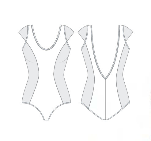 Maillot innovador y elegante confeccionado con microfibra de alta calidad en combinación con una sorprendente piel sintética, cuello delantero en forma de U, manga caída, espalda baja en forma de V, inserciones de piel sintética en el frontal, laterales, mangas y espalda, forro delantero