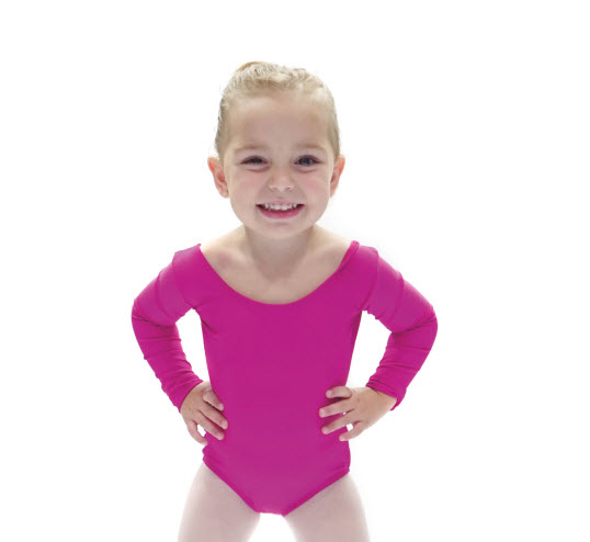 Maillot básico para danza con manga larga, escotes redondos, forro delantero y gran variedad de colores a elegir