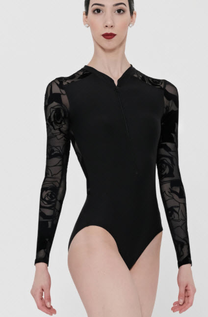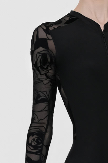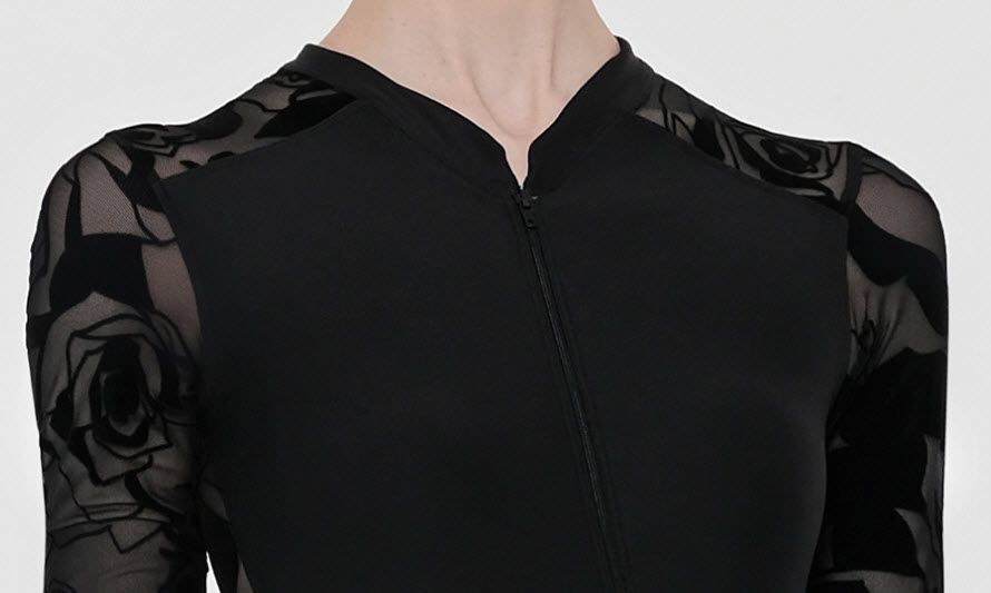 Elegante maillot de manga larga con cuello alto y cremallera frontal