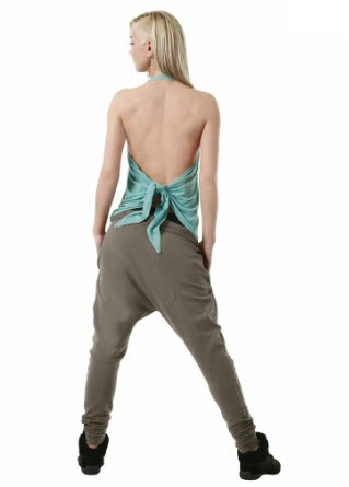 Pantalones Harem bicolor, cintura elástica con cordón