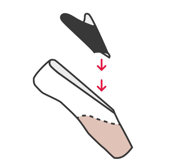 Colocados en la parte superior del empeine, dentro de la caja, abrazan la parte superior y los lados del pie