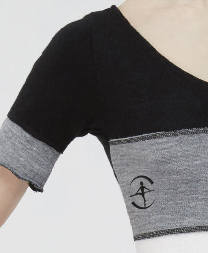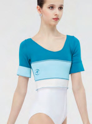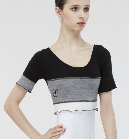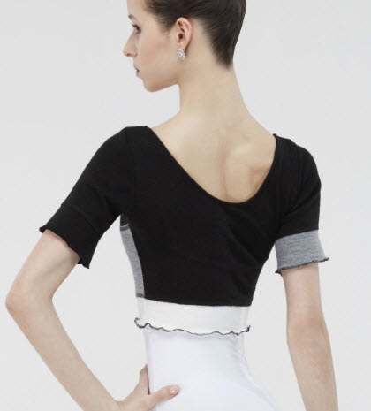 Elegante top corto de punto elástico con cómodo diseño de patchwork y escote redondo