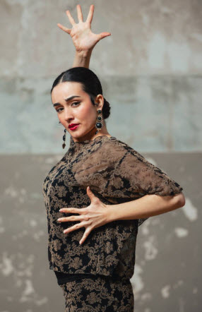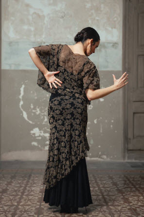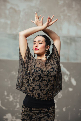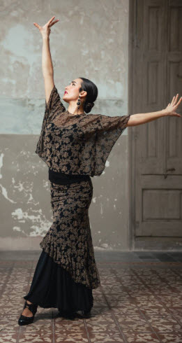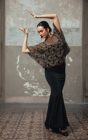 Top flamenco largo hasta cadera de manga corta, escote barco y todo pulido