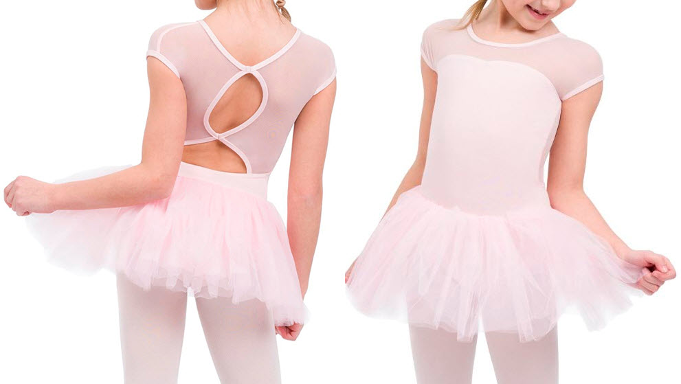 Tutú entero, con maillot incorporado, forro interior, escote corazón delantero en malla ilusión, espalda abierta diseño cerradura, manga corta de malla, tres capas de tul